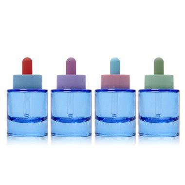 Hvíta dropaflaskan er skörp og nútímaleg: gljáandi, postulíns-eins og líkami í daufu skýi-bláum tón setur rólegan bakgrunn fyrir vörumerkið þitt, á meðan blómblaða-bleikur kragi og snjóhvítur-pera gefa vinalegum hreim. Skuggamyndin er nett með rausnarlegar axlir og stuttan háls. Það lítur markvisst út á hégóma og stillir sér snyrtilega í smásölubakka. Vegna þess að lakkið hefur lúmskan gljáa frekar en mikinn gljáa, rennur ljós yfir ferilinn og skapar mjúkan hápunkt-sem er frábært fyrir myndatökur í stúdíó og UGC myndbönd. Sívalningur veggurinn gefur hreint prentsvæði fyrir fíngerða-tákn og ávali botninn lyftir formið svolítið þannig að pakkinn virðist fljóta.